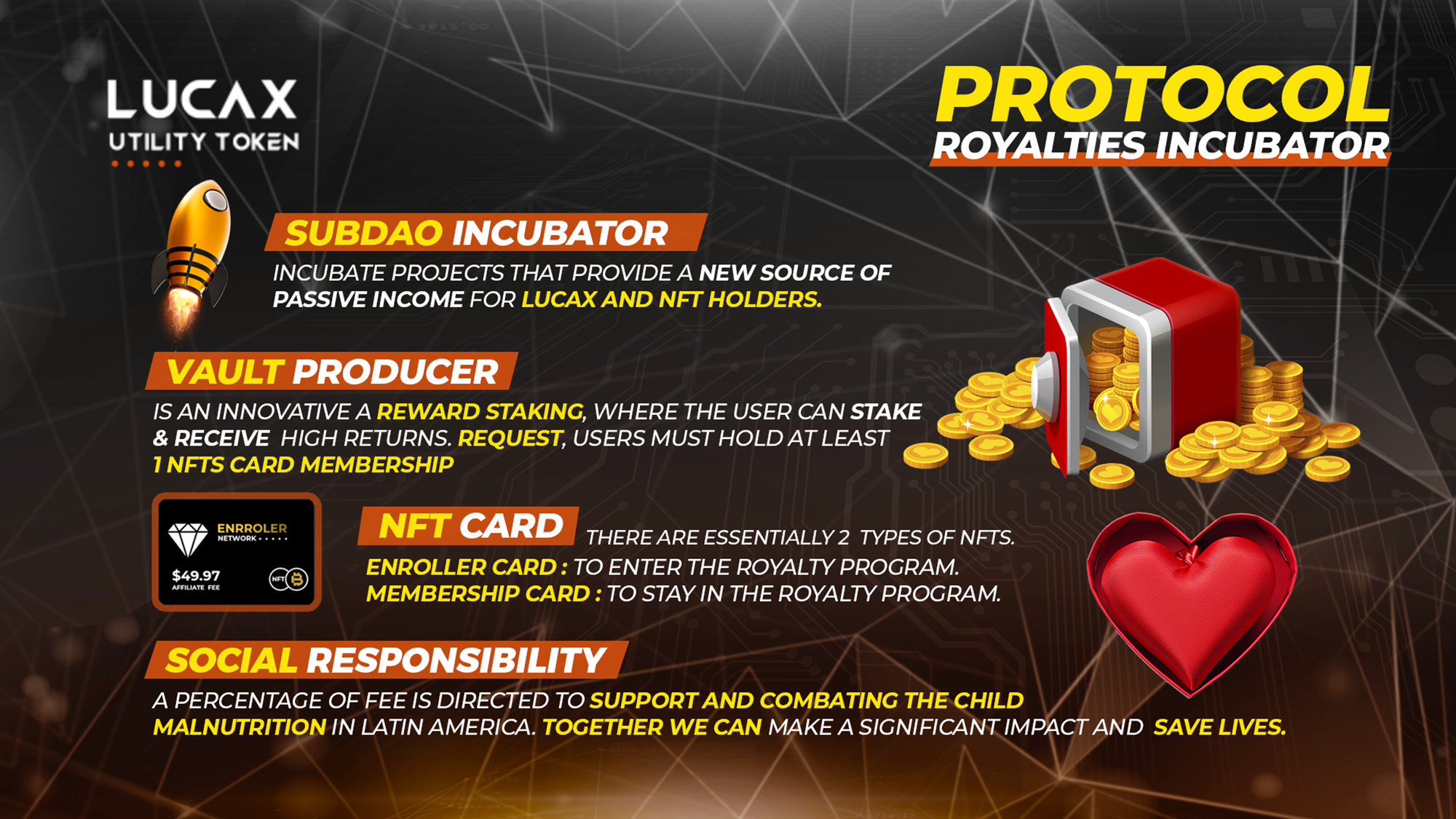 &#x20;💎**The Token $LUCAX**, Is a utility token of the Protocol That Generates Royalty to Lucax Holders through revenue external.&#x20;